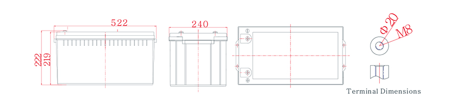 * Nano-silica gelelektrolyt en lood-koolstof composiet negatieve plaat, lange levensduur van de batterij, uitstekende ontladingscapaciteit in diepe cyclus, uitstekende lading acceptatie.