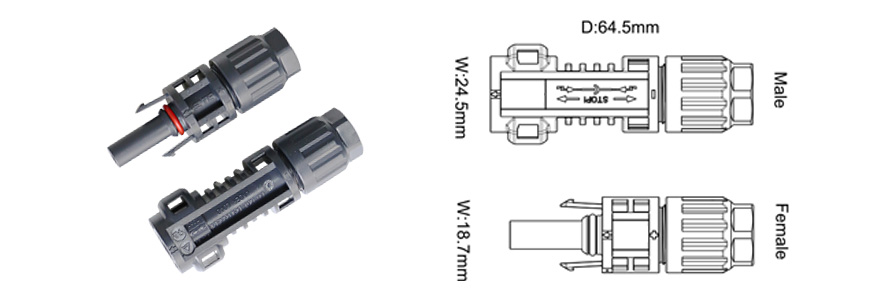 De PV4-S zonneconnector is getest om betrouwbare en veilige verbindingen van zonnepanelen te garanderen. De connectoren maken gebruik van industriestandaard krimpgereedschap dat tegenwoordig gemakkelijk verkrijgbaar is en wordt gebruikt door installateurs.