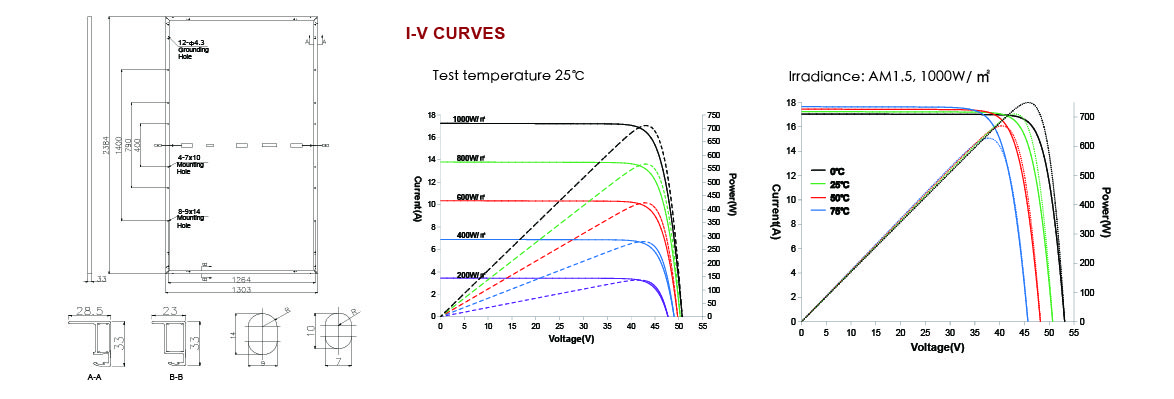 Dit tweezijdige zonnepaneel van 700-720 W maakt gebruik van HJT-technologie van het N-type, en de HJT-modules maken gebruik van de productietechnologie van lint bij lage temperatuur en flux bij lage temperatuur, waardoor betrouwbaarheid en prestaties worden verkregen die vergelijkbaar zijn met die van PERC.