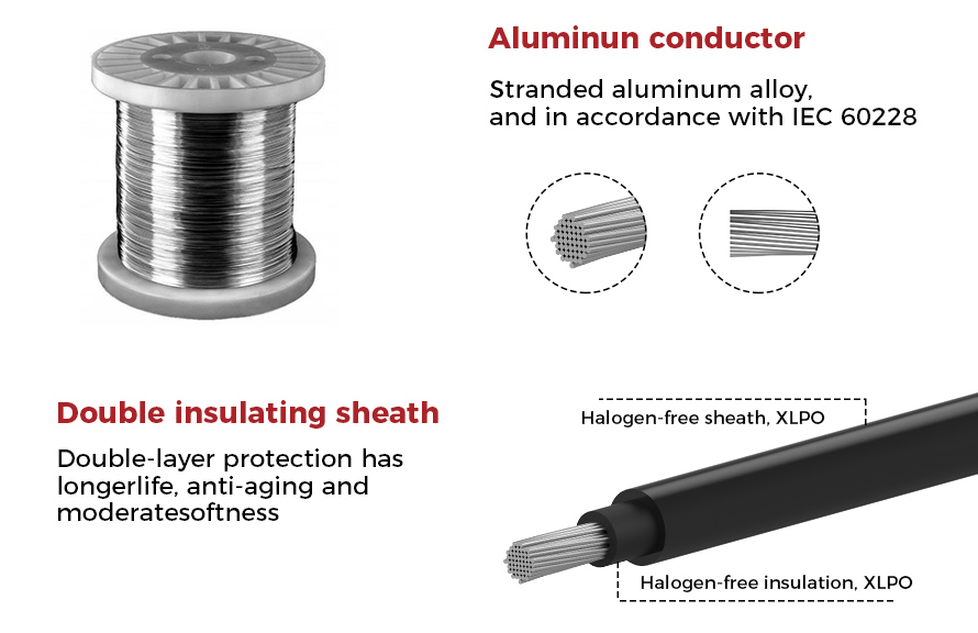 Halogeenvrij. UV-bestendige laagspanningskabel. De TÜV2642 aluminium kabel is door de zeer robuuste buitenmantel bijzonder geschikt voor buitentoepassingen.