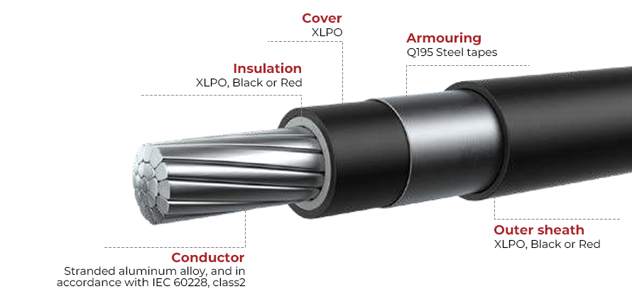 Gepantserde kabel Klasse 2 25 mm² TÜV 2PfG/2642 1500 V DC-draad Aluminium kern Directe ingraafdraad