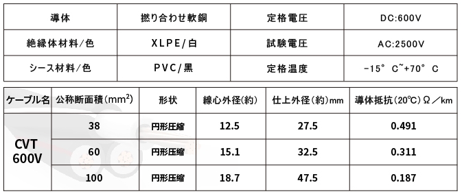 CVT-kabels (afkorting van "cross-linked polyethyleen geïsoleerde vinyl omhulde kabels") zijn JIS-standaardproducten, dit zijn enkelkernige CV-kabels die in stroomkabels zijn gewikkeld en worden gebruikt voor de transmissie en distributie van alle elektrische energie, van laagspanningskabels naar hoogspanning.
