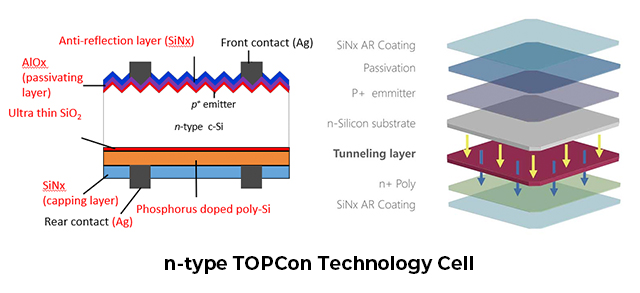 In de kern hebben TOPCON-zonnecellen een uniek ontwerp dat een tunneloxidelaag in de gepassiveerde contactstructuur bevat. Dit zorgt voor een betere elektronenextractie en vermindert recombinatieverliezen, wat resulteert in een hoger vermogen en een verbeterde conversie-efficiëntie.