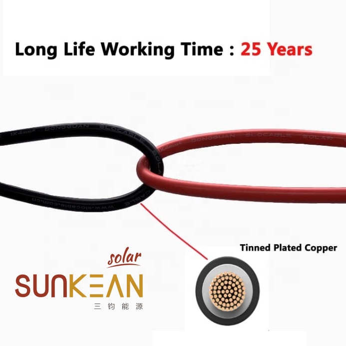 Fotovoltaïsche kabels worden constant blootgesteld aan zonlicht en de zonnesystemen werken vaak onder zware omgevingsomstandigheden zoals hoge temperaturen en UV-straling. Op zonnige dagen kan de locatietemperatuur van het zonnestelsel oplopen tot 90 - 100 ℃. SUNKEAN zonnekabel is gecertificeerd door TUV/CE/UL, gespecialiseerd in het werken voor zonnestelsels. Als u kiest voor gewone PVC-kabels in plaats van fotovoltaïsche kabels, heeft dat uiteraard een grote invloed op de levensduur van het zonnestelsel.