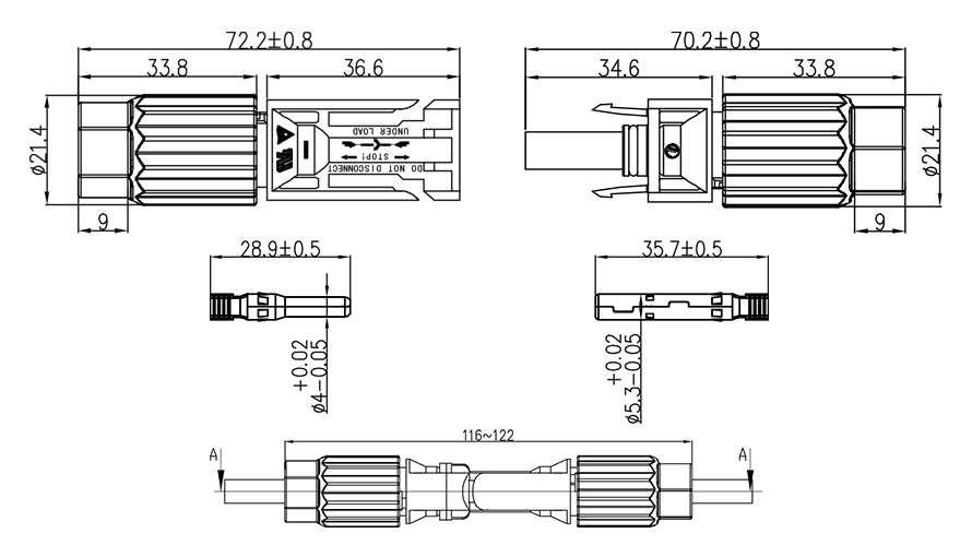 IP68 waterdichte zonne-fotovoltaïsche DC-connector mannelijke en vrouwelijke verbindingen zijn goedgekeurd door TUV, which is geschikt voor fotovoltaïsche kabels met verschillende isolatie diameters.