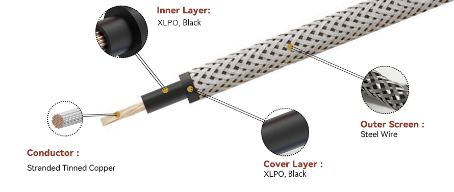 Dit roestvrijstalen schildvlechtwerk 1500V H1Z2Z2-K is geschikt voor het onderling verbinden van de componenten van PV-systemen en wordt gekenmerkt door: optimale mechanische eigenschappen in een bereik van bedrijfstemperaturen - 40 tot + 90 ° C, hoge slijtvastheid, scheurvastheid, UV, ozon , water, vlamvoortplanting, weinig rook, halogeenvrij, weersbestendig waardoor een periode gelijk aan de levensduur van het PV-systeem mogelijk is. Bovendien bieden ze voldoende bescherming tegen knaagdieren en termieten.